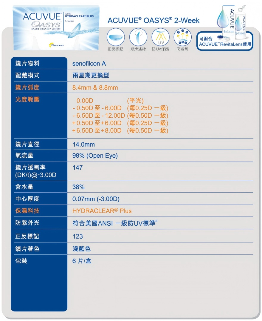 HYDRACLEAR®PLUS水潤科技將水份鎖在鏡片內部,保持淚膜穩定,從而提升配戴舒適度,一款舒適透氧的矽水凝膠雙週拋鏡片。