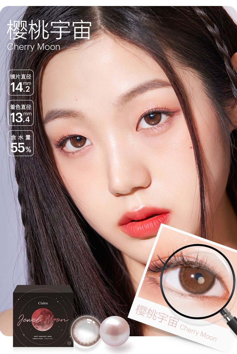 Clalen Jewel Moon Cherry Moon 系列係 Clalen 嘅全新力作,專為追求甜美個性、浪漫異國風情、同時帶有星光感嘅時尚用戶而設。Cherry Moon 色號憑藉其獨特嘅放射狀星月圖案透明櫻桃粉色調,為你打造猶如星河閃爍般迷人、亮眼嘅眼瞳。