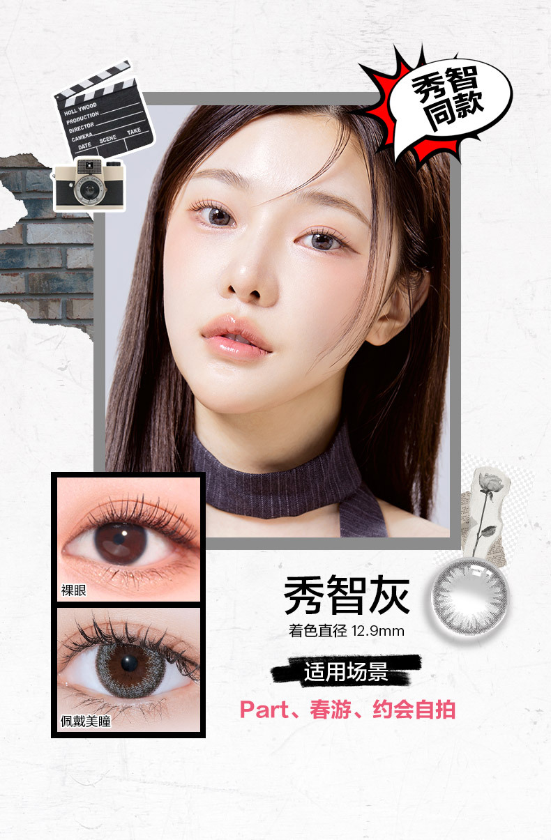 清冷透明感:色調以優雅嘅灰色為主軸,融合咗細碎嘅淺啡色點綴,令灰色戴上眼後唔會顯得生硬死白。邊緣採用自然漸變設計,同原生眼色過渡得非常柔和,提升眼神嘅銳利度之餘,亦非常適合微醺妝或個性化妝容。