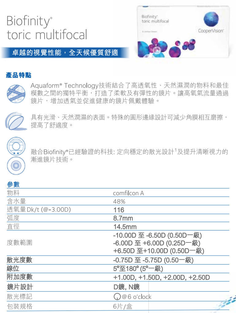 Biofinity® 漸進多焦點(老花)散光隱形眼鏡