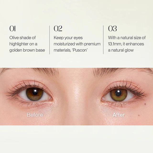 OLENS Eyelighter Glowy Golden Olive (1-Day) — 高光貓眼!琉璃棕綠異國瞳