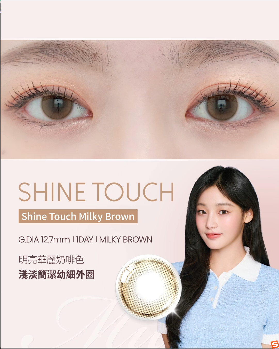 Shine Touch 系列嘅設計重點係打造出自然清澈、帶有微光澤感嘅眼神。Milky Brown 色號就好似落咗一滴牛奶嘅朱古力奶色,柔和溫暖,完美增添雙眼嘅甜美氣質感。