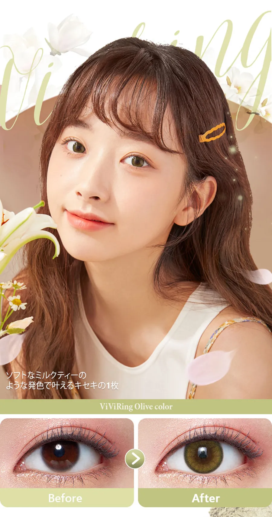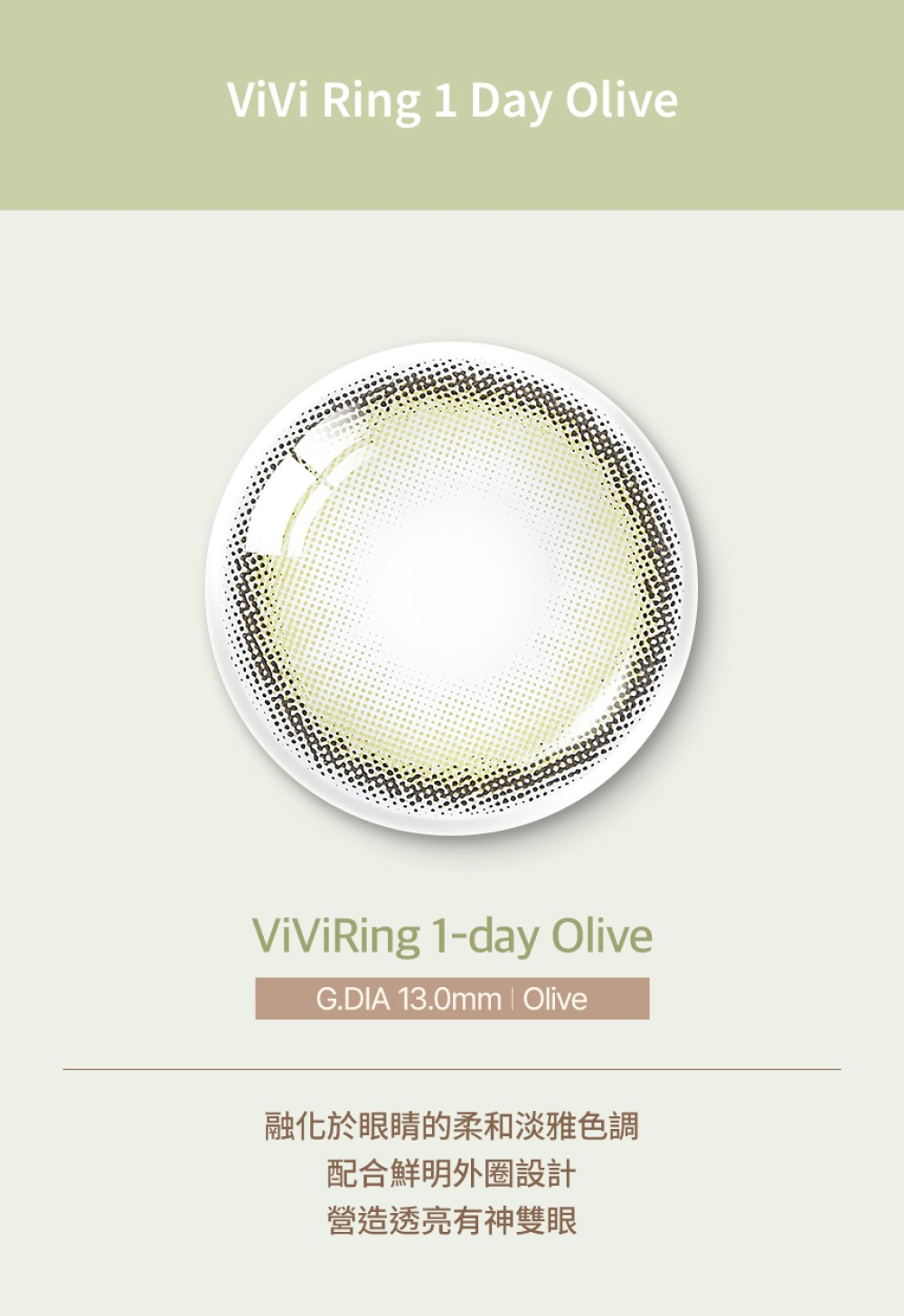 ViVi Ring 系列作為 OLENS 的長青皇牌,一直以「溫柔、夢幻、自然」著稱。而 Olive 橄欖綠 更是系列中的調色天花板!它並非誇張的鮮綠色,而是融入了灰調與奶茶色的霧感橄欖綠。